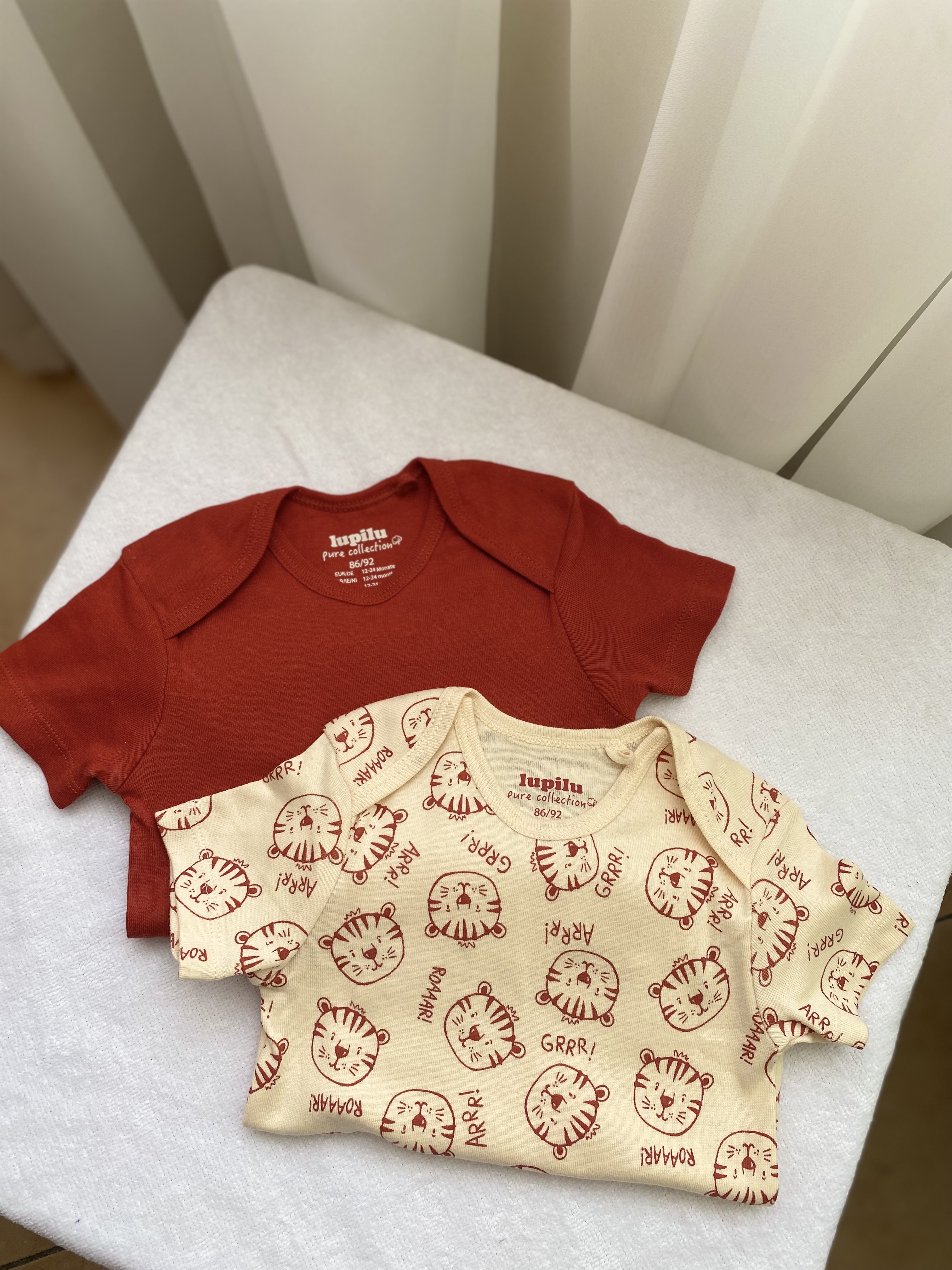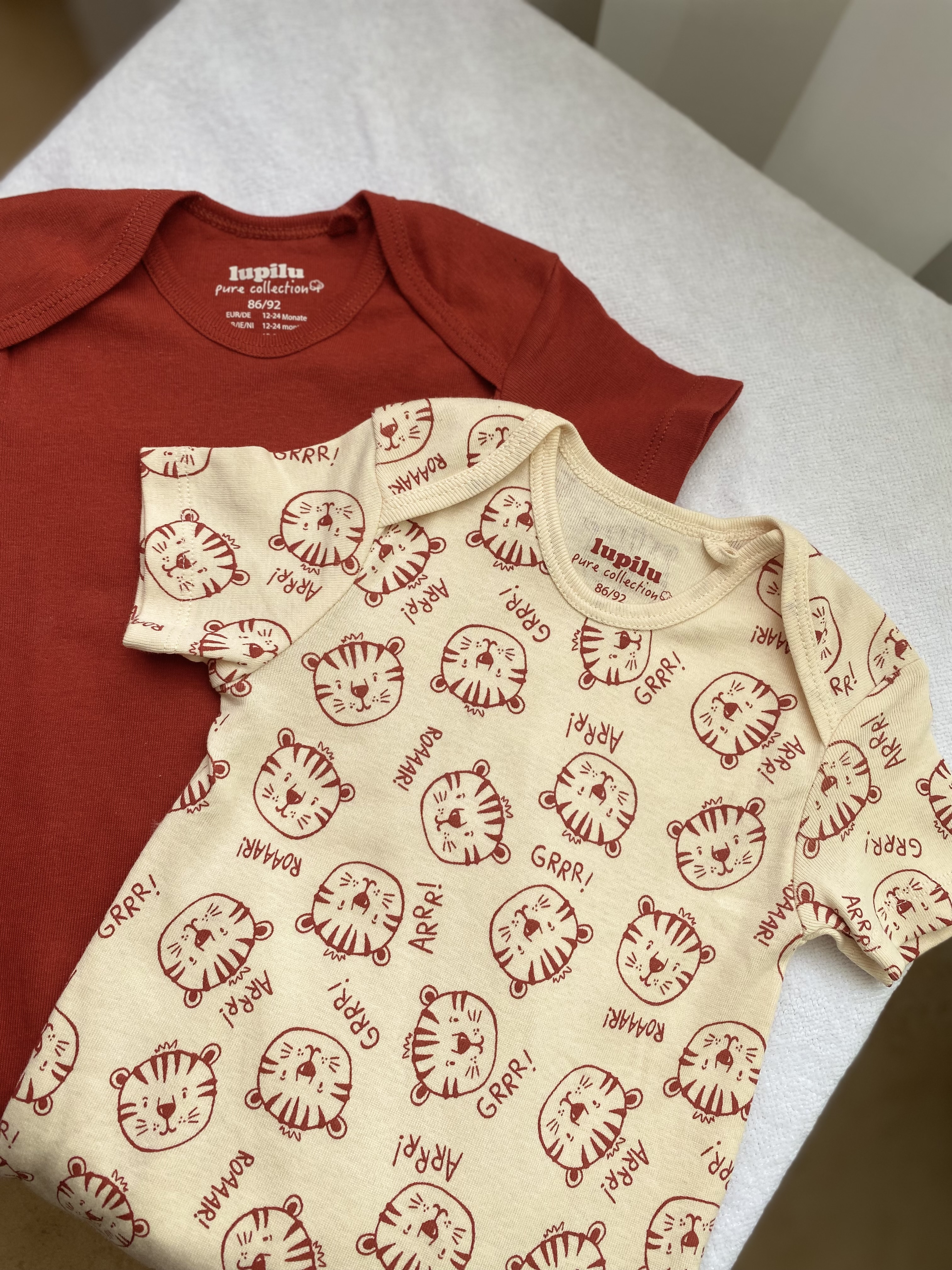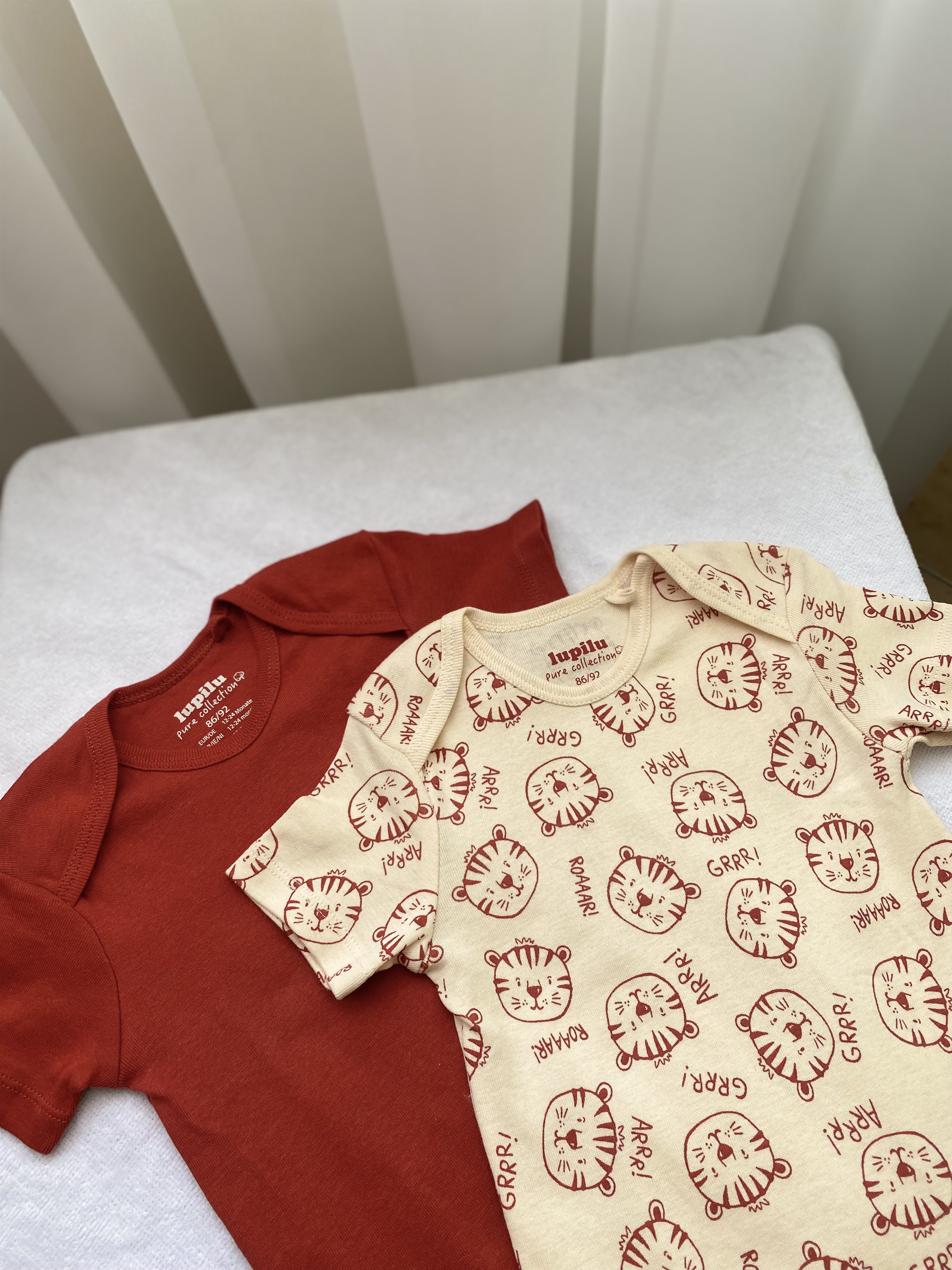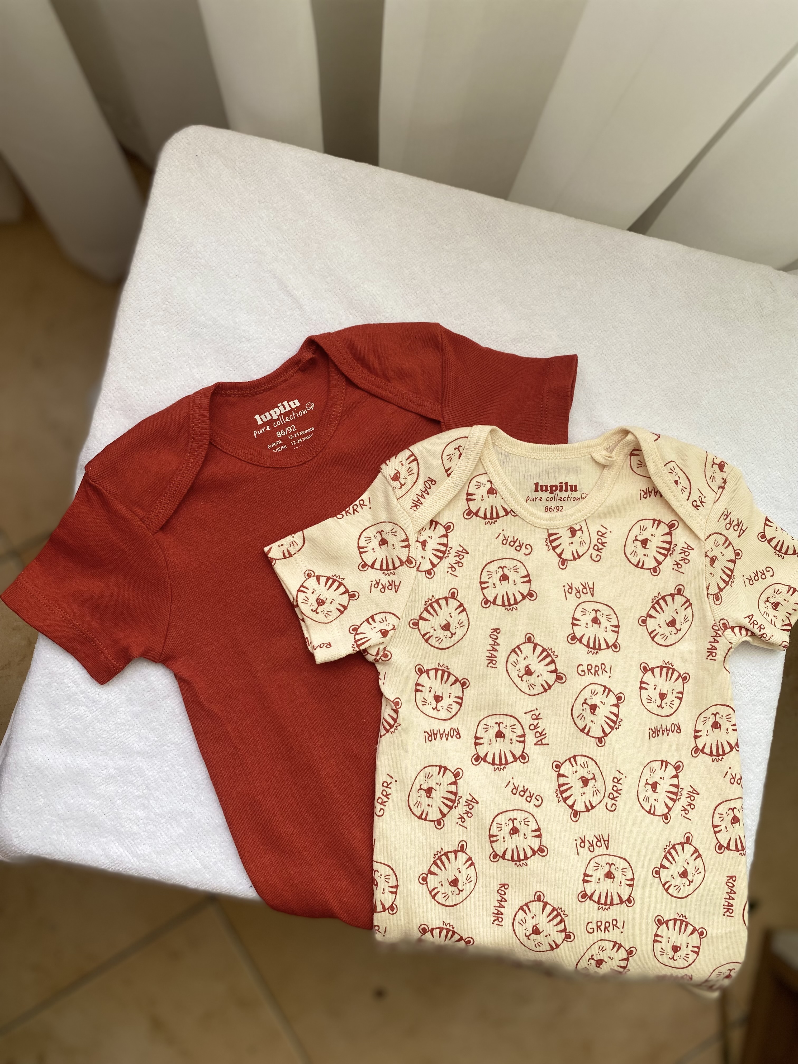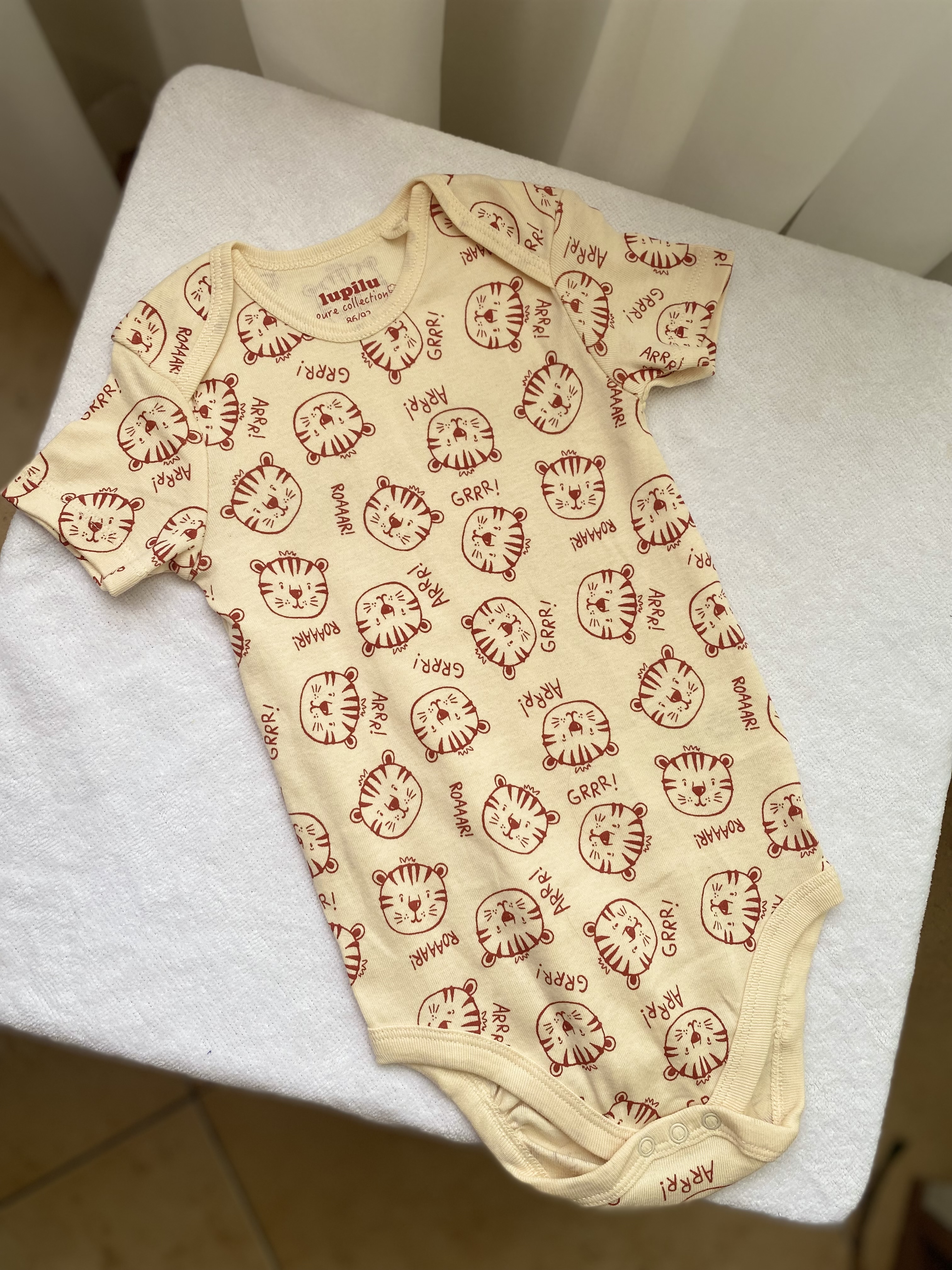 🍃بادی آستین کوتاه🍃 . برند لوپیلو جنس پنبه ضد حساسیت کشسانی عالی فوق العاده لطیف و خنک و راحت . سایز ۱۲ تا ۲۴ ماه: عرض سینه ۲۴، قد ۴۸